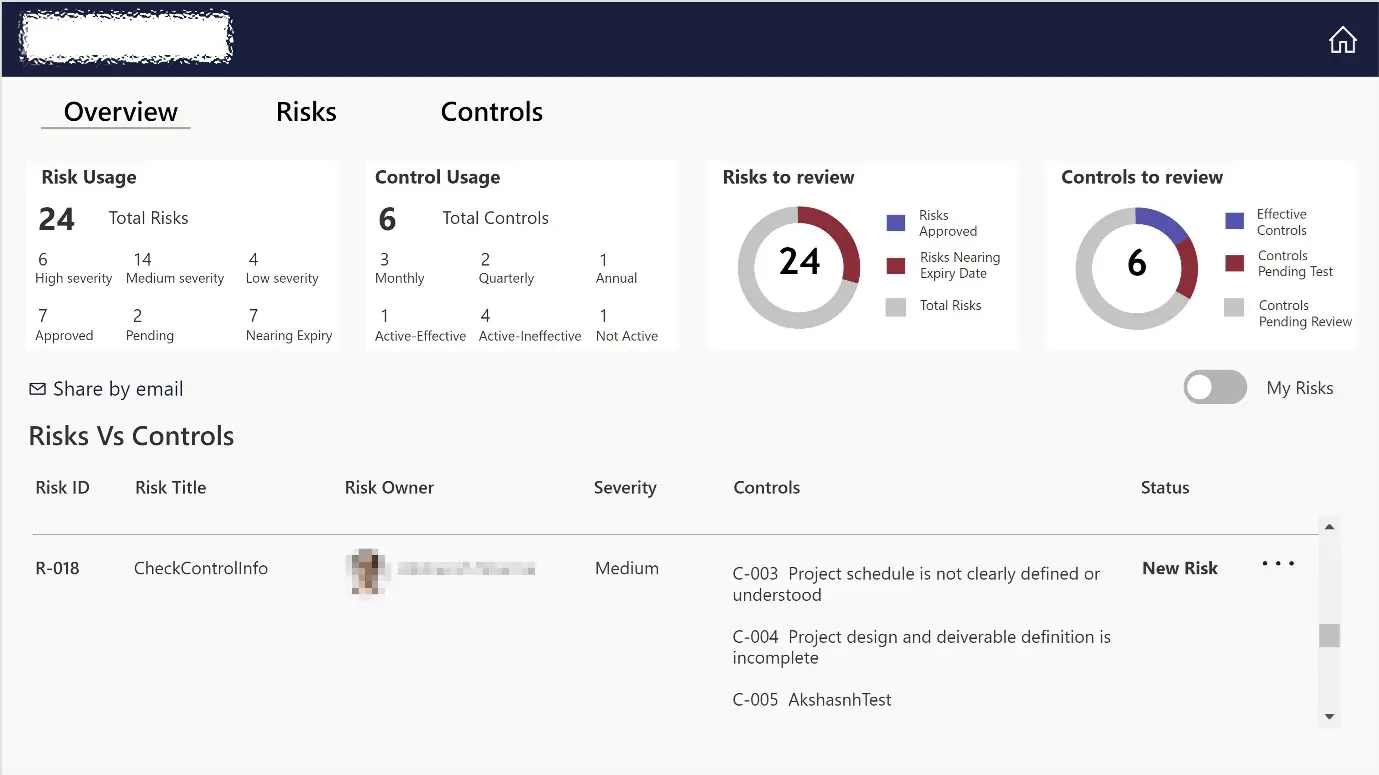 Internal Controls Risk Register - Power Apps