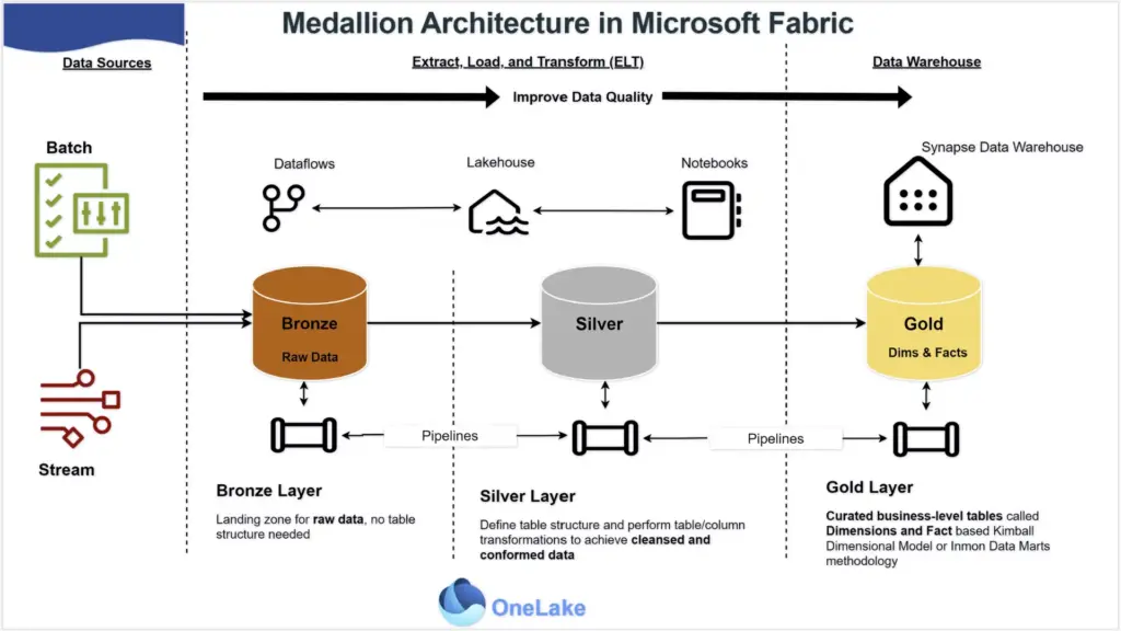 Microsoft Fabric is built to support modern data architectures and medallion architecture fits naturally into it.