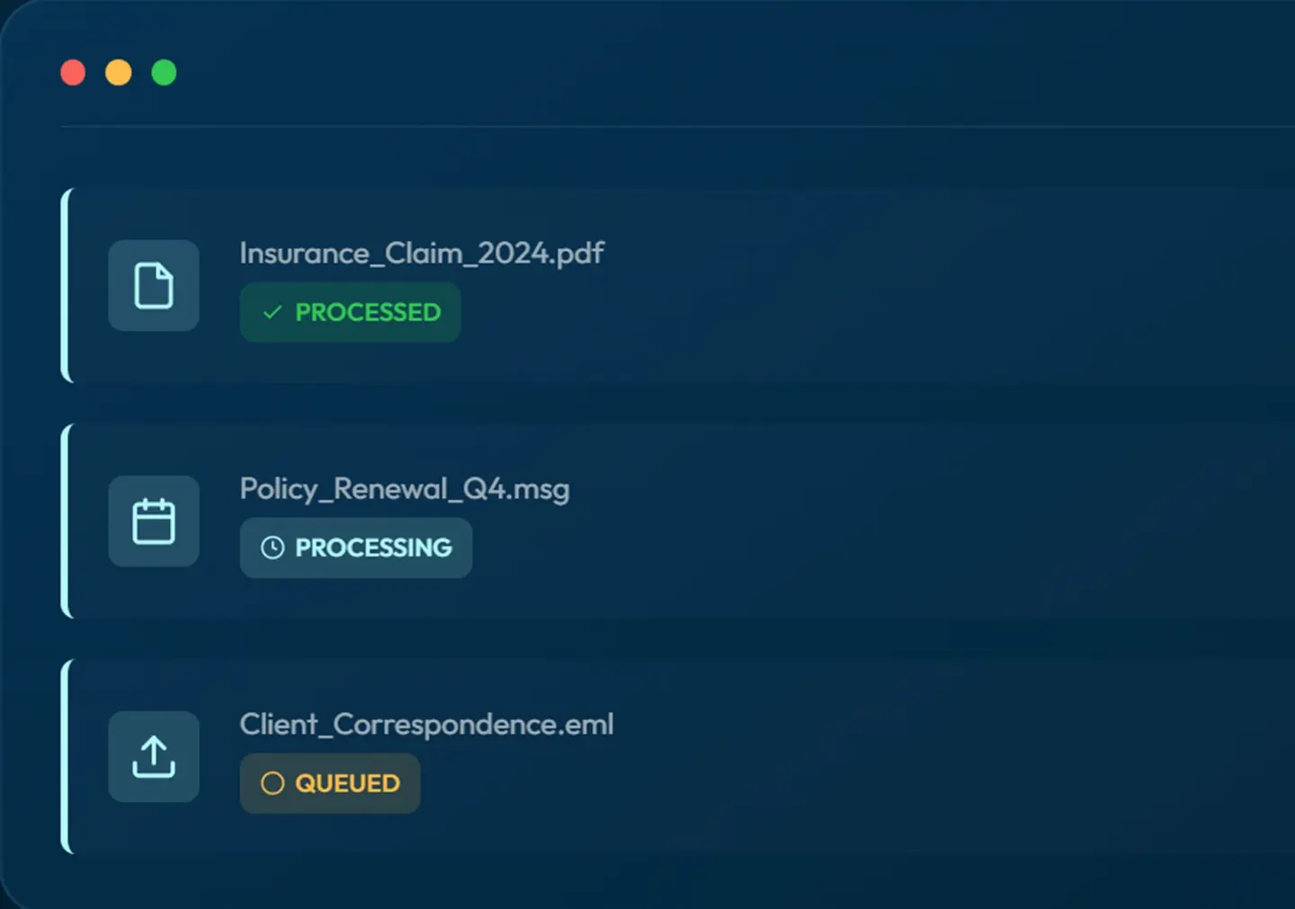 Insurance teams spend a disproportionate amount of time manually reading emails, downloading attachments, and extracting the same information from similar documents across projects and clients.