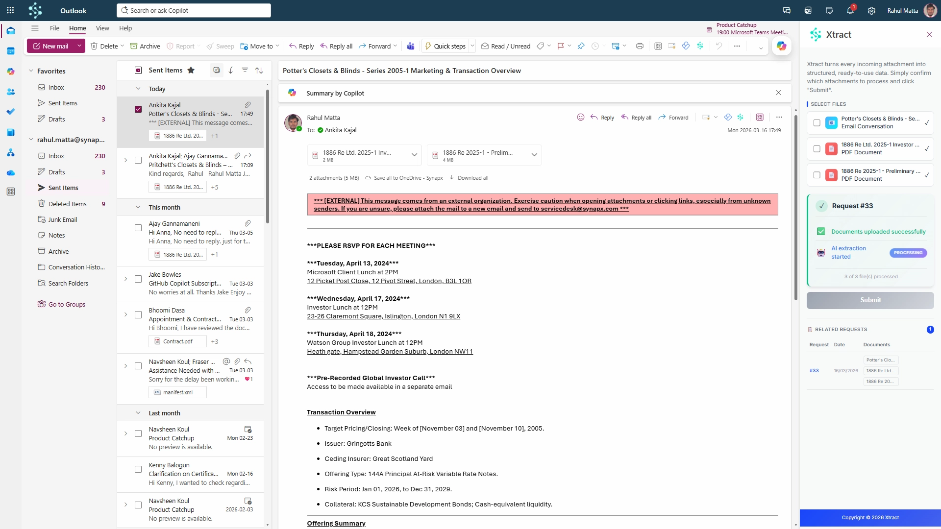 Xtract is an Outlook plugin tool/extension for insurance companies that automates email document processing and converts emails and attachments into structured, auditable PDFs — without changing how teams work.